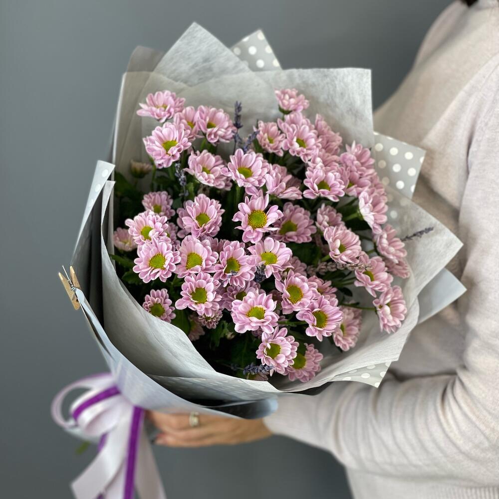 Букет с нежной кустовой хризантемой "Лавандовое лето"