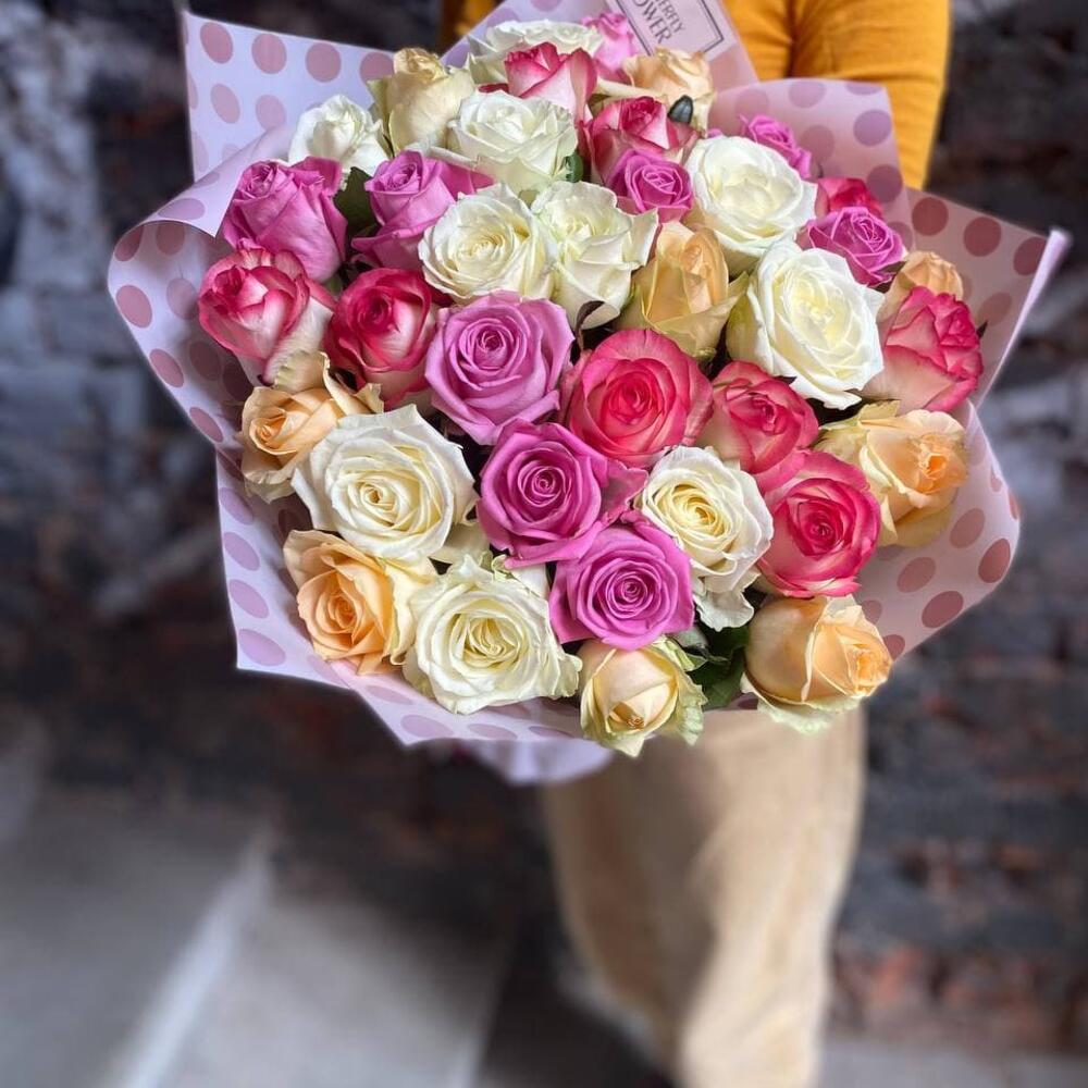 Букет из 37 разноцветных роз