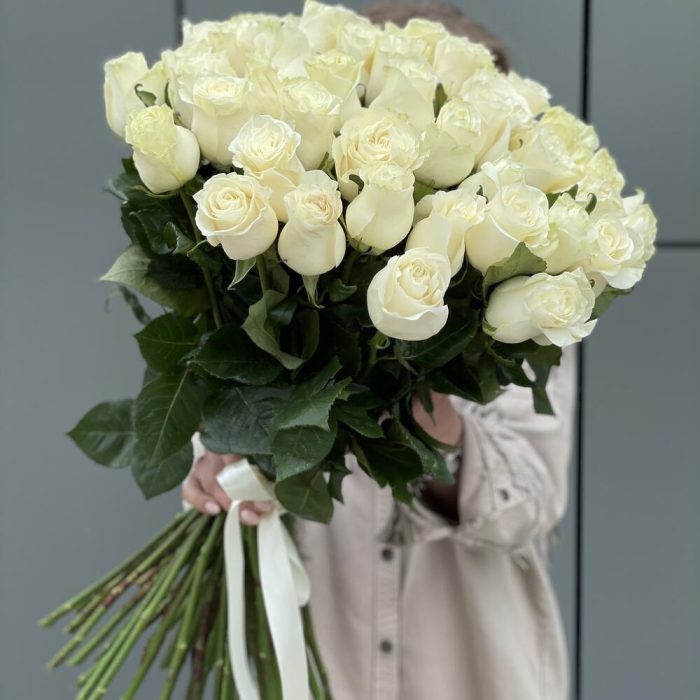 Метки: 14 февраля, 51 роза, Белые розы, от 5000 руб, Роза 50 см