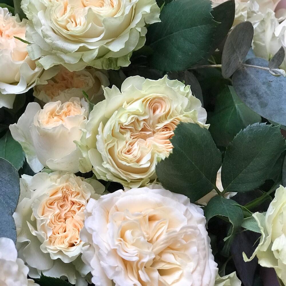 Джульетта (пионовидные розы с эвкалиптом)