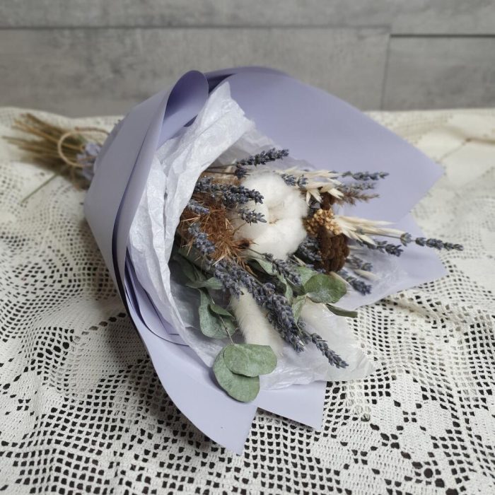 Букет с лаванда, лагурусом и хлопком