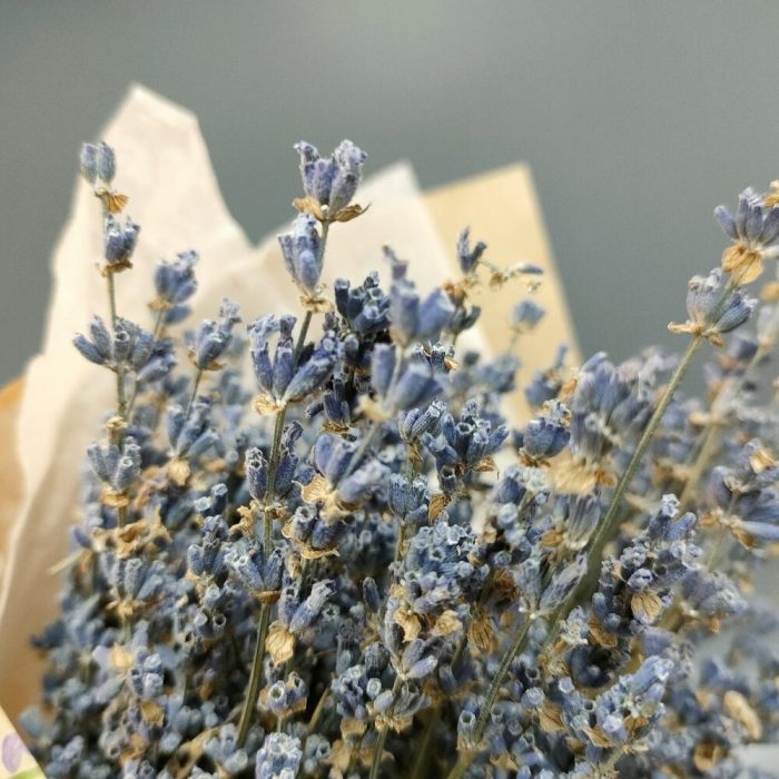 Лаванда (сухоцвет) – 100 шт.Тишью – 1 шт.Крафт упаковка – 1 шт.Лента атласная – 1 шт.